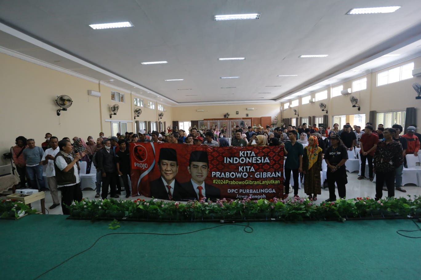 Ketua DPC projo kab Purbalingga Bpk Sugio menegaskan kepada lapisan masyarakat serta menghimbau kepada para ketua PAC dan Kordes yang Berada di kab purbalingga serta relawan Prabowo-Gibran yang di hadiri kurang lebih dari 600 relawan.