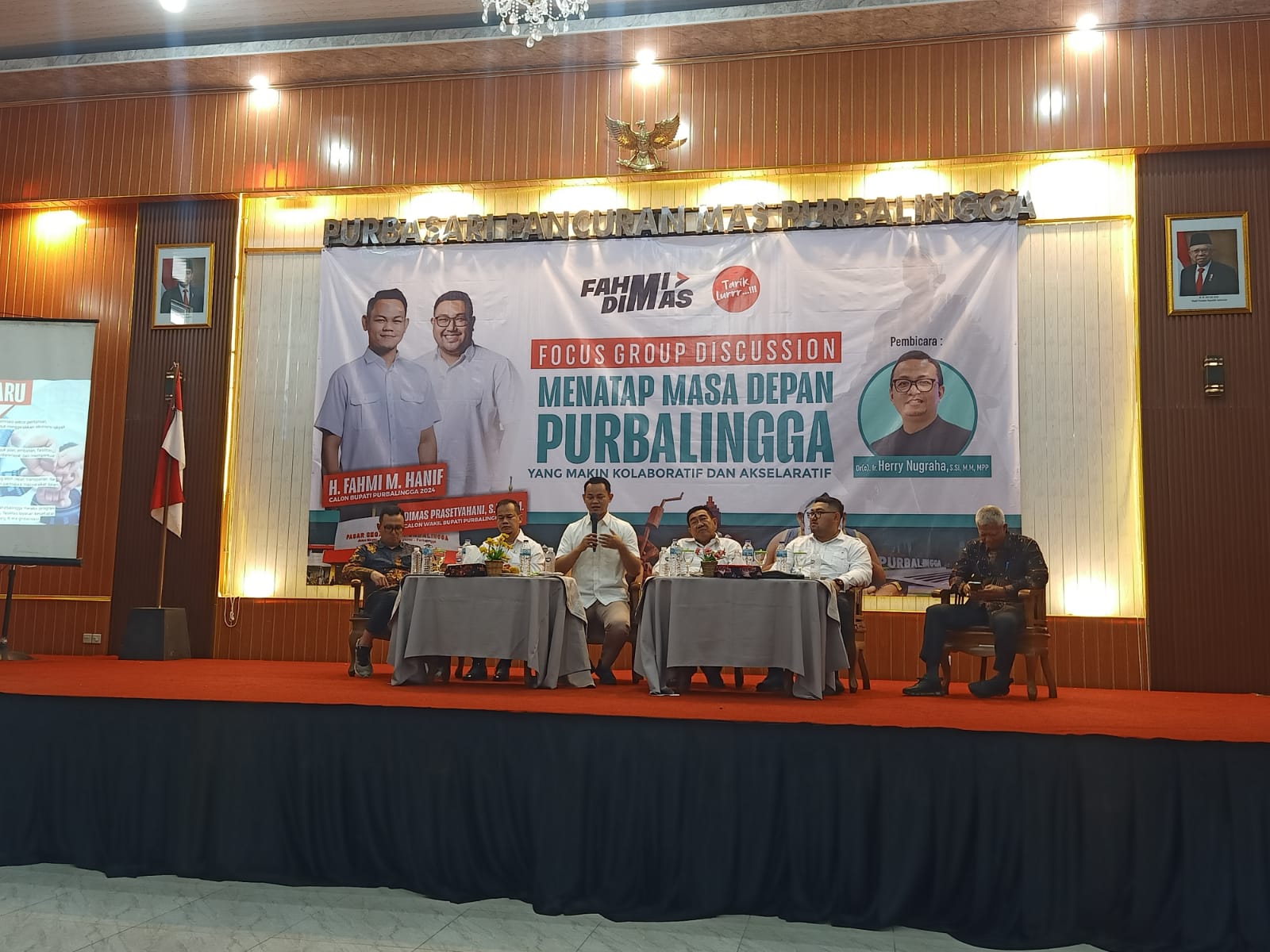 FGD dengan tema Menatap Masa Depan Purbalingga yang makin kolaboratif dan akseleratif itu menghadirkan pembicara Dr Ir Herry Nugraha SSi MM MPP dari Bogor. Acara ini dipandu oleh moderator Agus Winarno MSi.