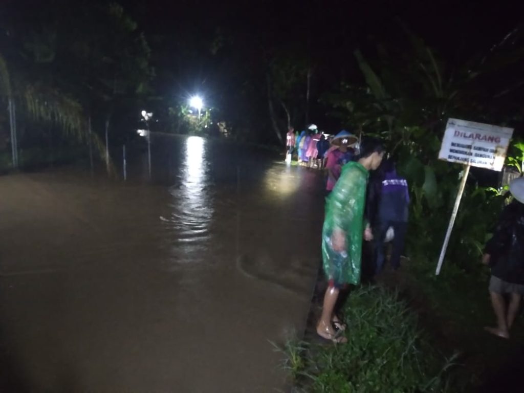 “Hujan yang turun dari siang mengakibatkan jebolnya tanggul irigasi BTW (Onggok Bawah) dan berdampak banjir yang merendam 8 rumah warga dengan ketinggian mencapai 50 Cm,” ungkap Babinsa.