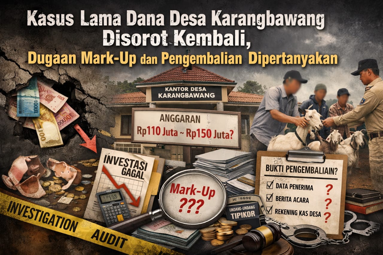 Kasus dugaan penyimpangan pengelolaan Dana Desa di Desa Karangbawang hingga kini belum menunjukkan kejelasan meski peristiwanya telah berlangsung cukup lama. Tidak adanya penjelasan terbuka kepada publik, audit yang diumumkan secara resmi, maupun pertanggungjawaban yang dapat diuji secara administratif dan hukum, menimbulkan perhatian serius terhadap tata kelola keuangan desa tersebut.