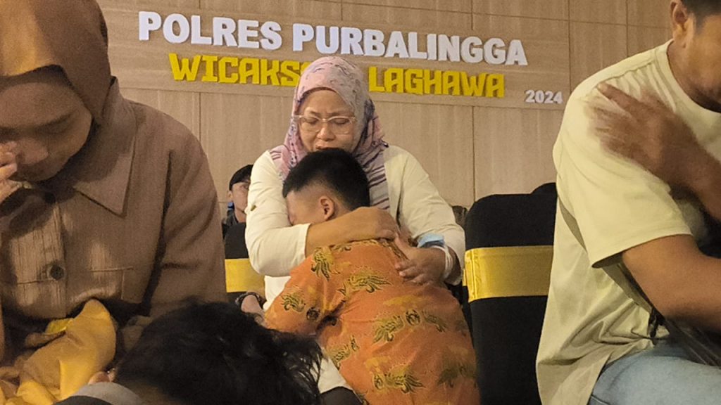Puluhan pelaku unjuk rasa anarkis yang sebagian besar masih anak-anak bersama orang tuanya mendapatkan pembinaan psikologi di Aula Wicaksana Laghawa Mapolres Purbalingga, Kamis (4/9/2025) siang.