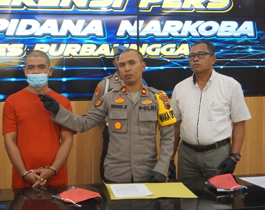 Wakapolres Purbalingga Kompol Donni Krestanto saat memberikan keterangan, Selasa (9/4/2023) mengatakan pihaknya berhasil mengungkap kasus penyalahgunaan narkotika jenis sabu. Tersangka yang diamankan yaitu S (44) warga Kecamatan Bukateja, Kabupaten Purbalingga.