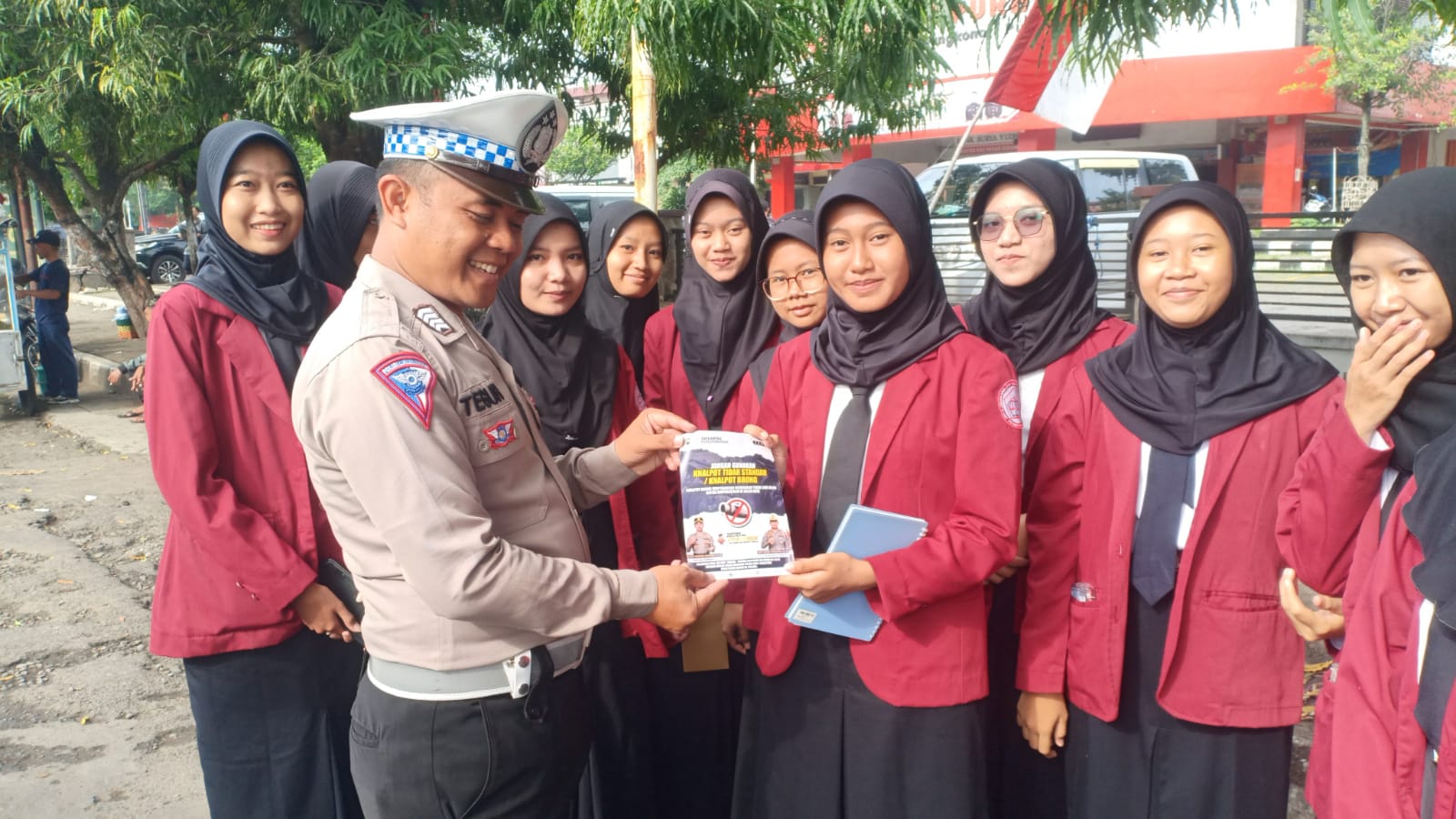 Disampaikan bahwa dengan pembagian pamflet ini kami mengajak seluruh lapisan masyarakat untuk tidak memasang knalpot brong pada kendaraan. Karena selainmelanggar aturan lalu lintas juga berpotensi menimbulkan gangguan ketertiban dan kenyamanan masyarakat.